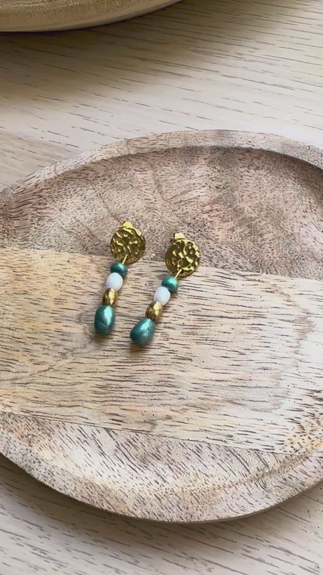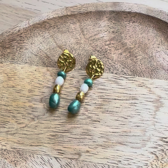 Les perles irisées sont réalisées à la main en argile polymère.