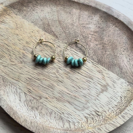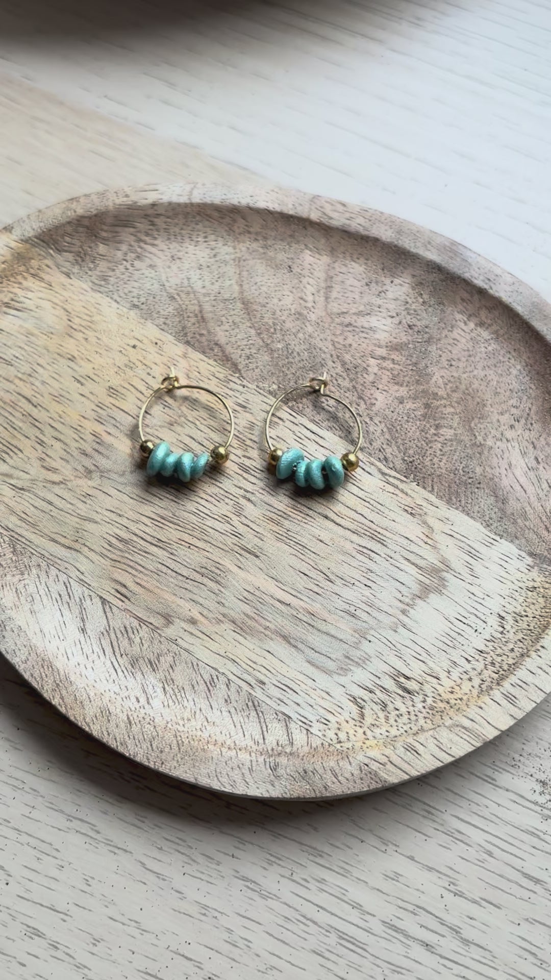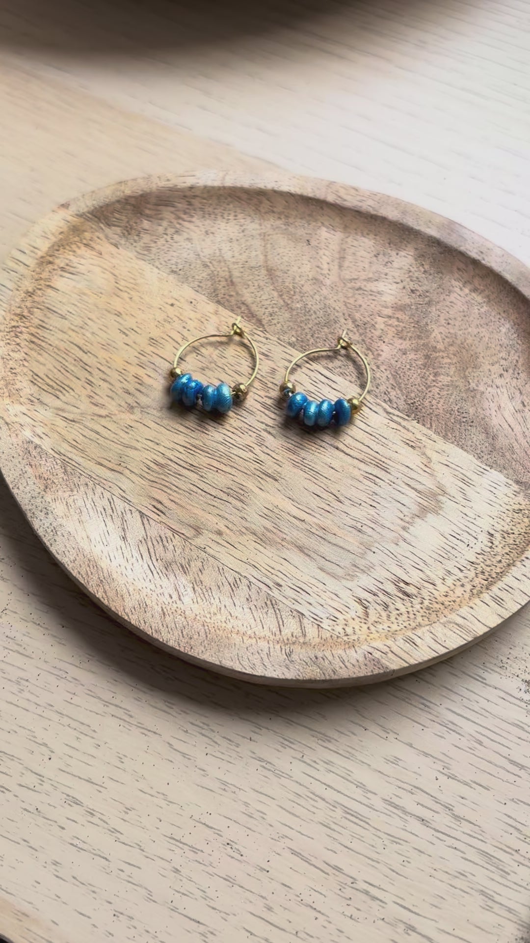 Les petites perles irrégulières et irisées sont réalisées à la main en argile polymère.