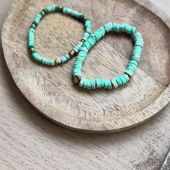 Chaque perle Heishi est réalisée à la main en argile polymère.