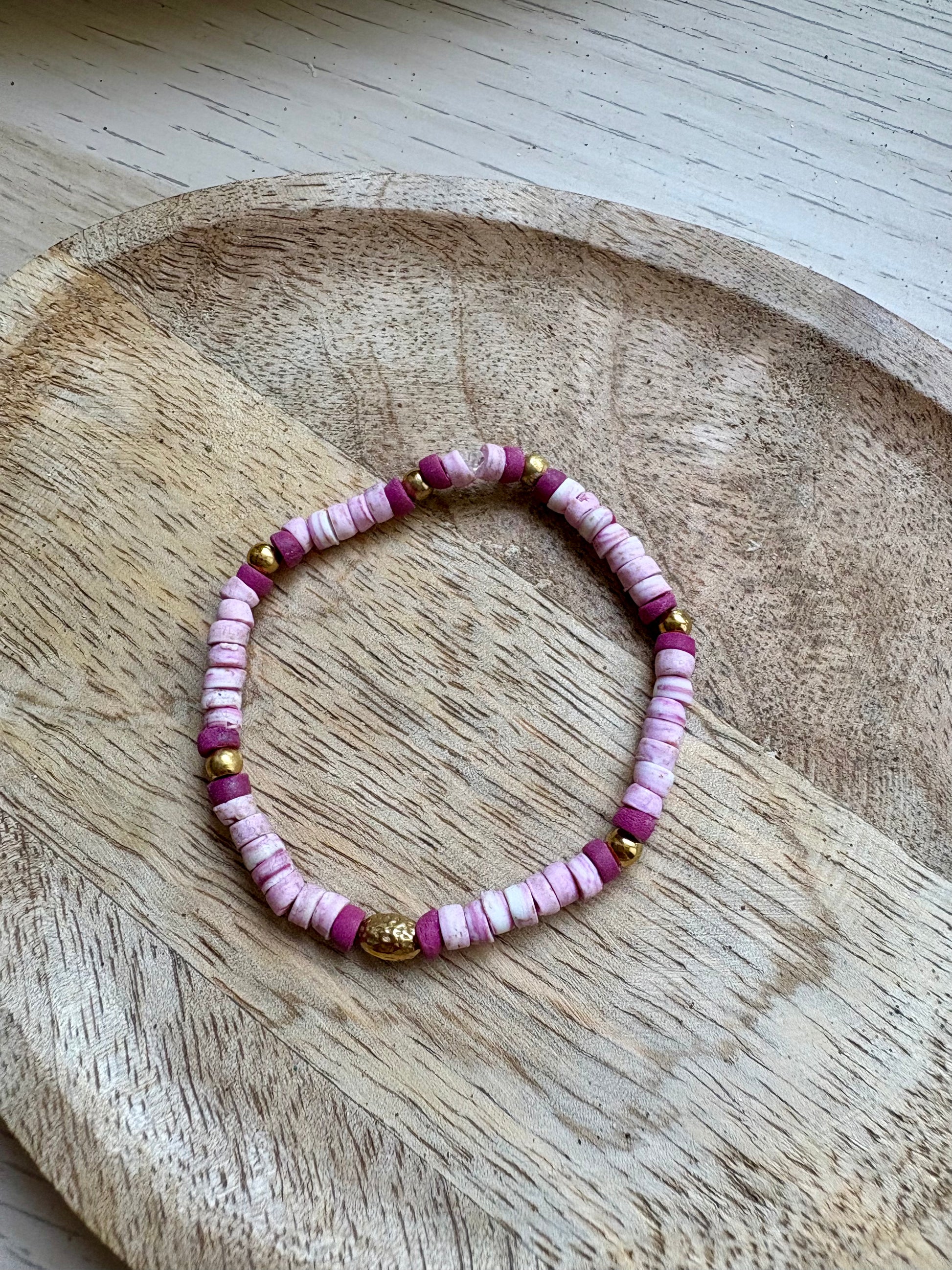 Les perles d'inspiration Heishi sont réalisées à la main en argile polymère.