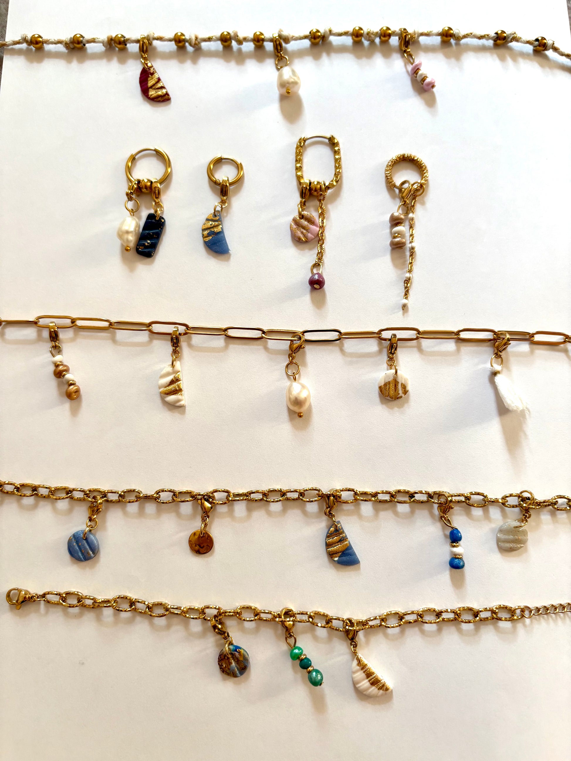 Des charms réalisés à la main qui peuvent s'intégrer sur les colliers et bracelets cordons et chaines, mais aussi sur les créoles.