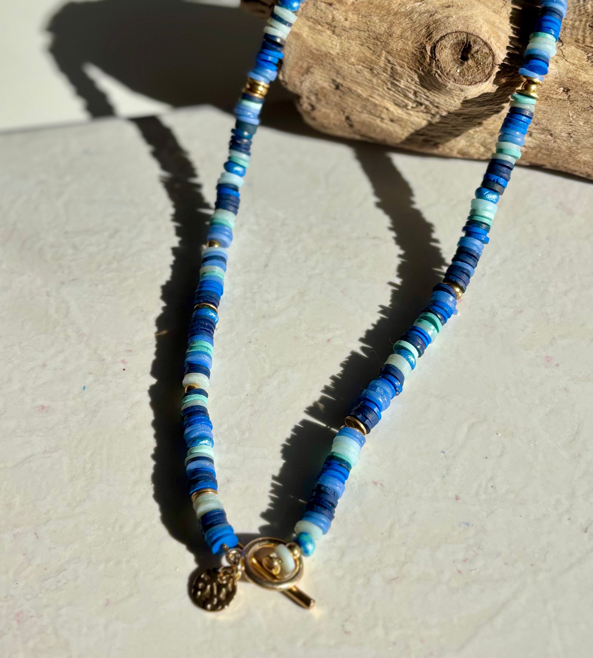 Les perles d'inspiration heishi sont réalisées à la main en argile polymère.