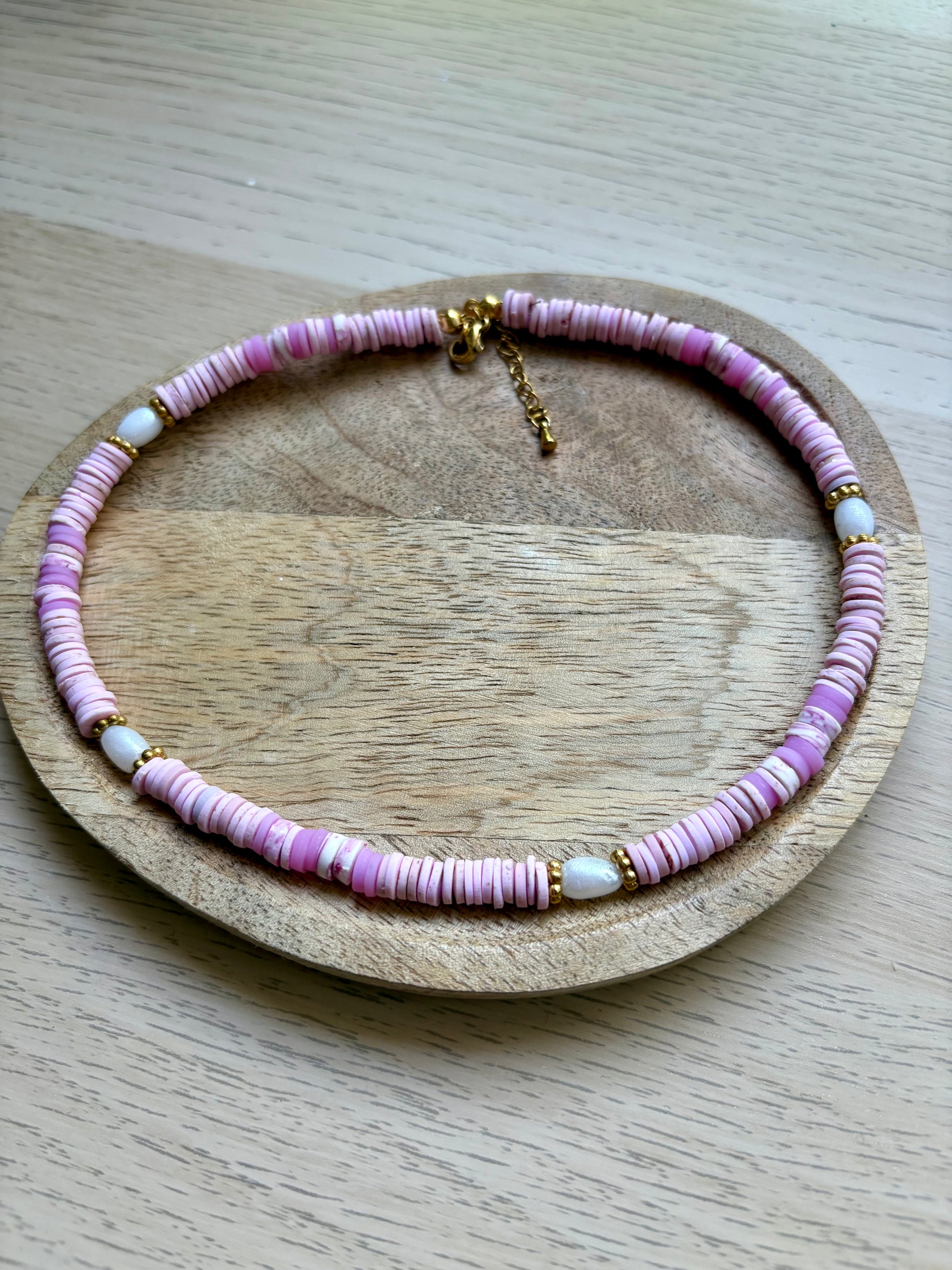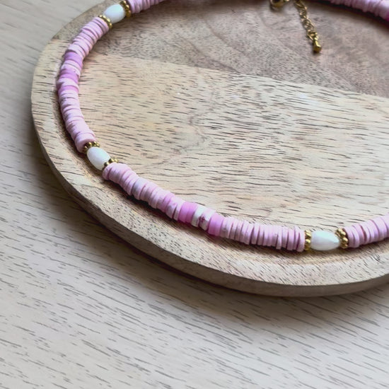 Collier Bodhi alliance d’authenticité et de douceur avec ses perles heishi et perles d’eau douce. Un bijou entre terre et esprit.