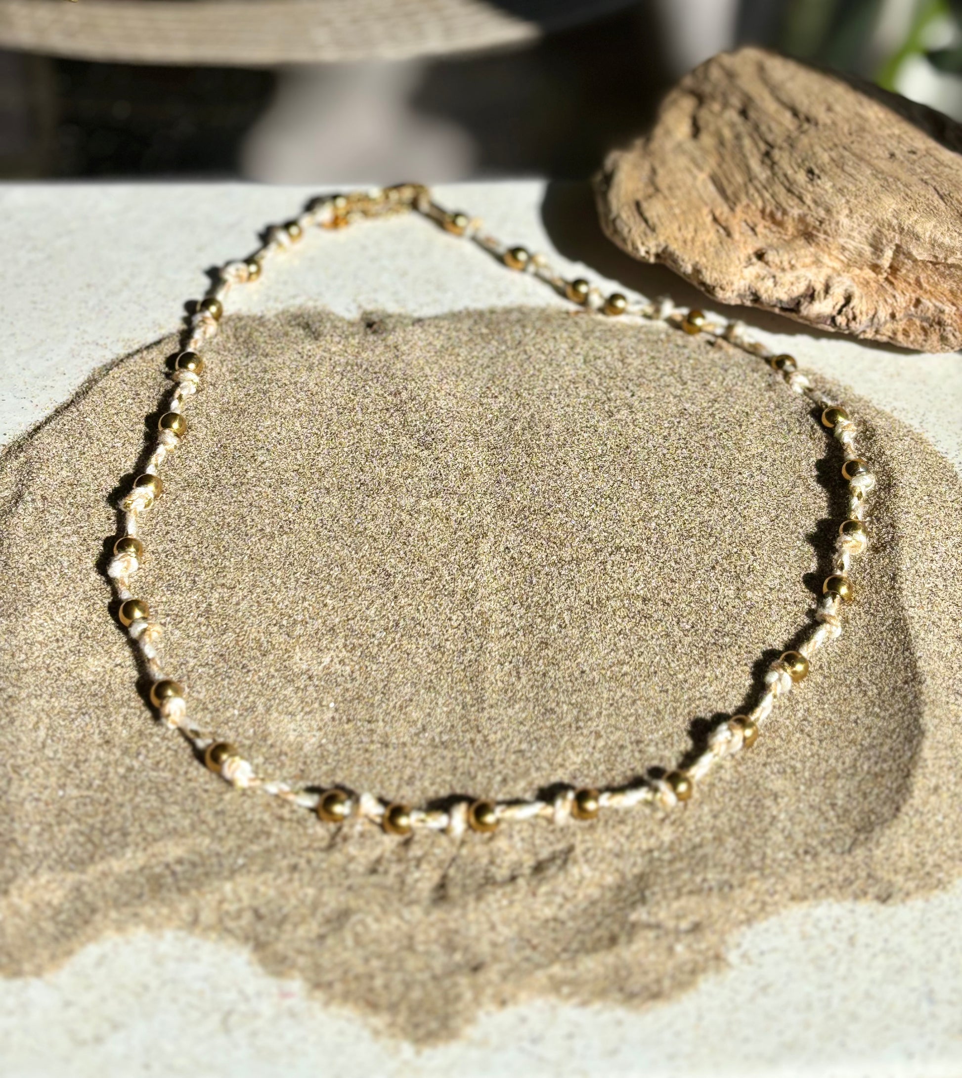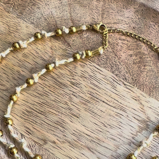 Bumi, un collier inspiré de la force tranquille de la nature, entre terres brûlées de soleil et murmures du monde ancien. Un bijou brut et précieux, comme un lien sacré à ce qui nous fonde.