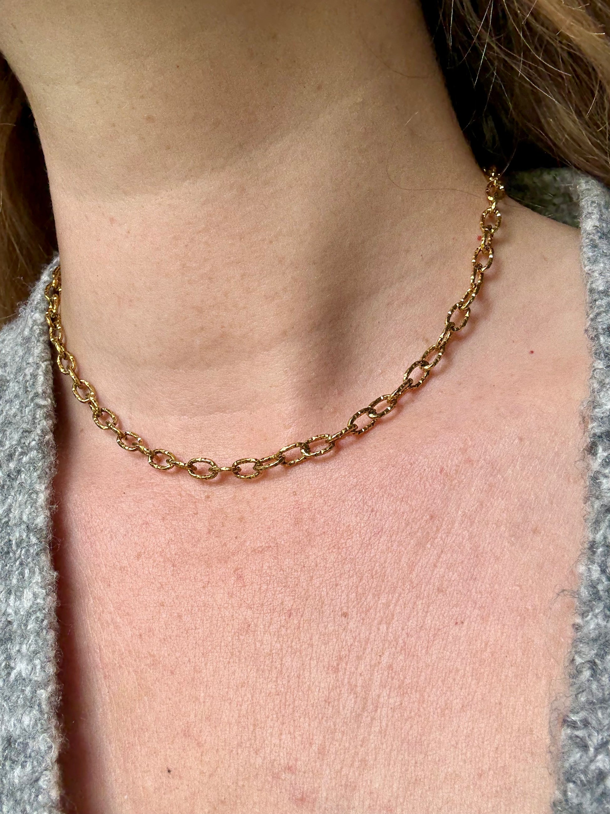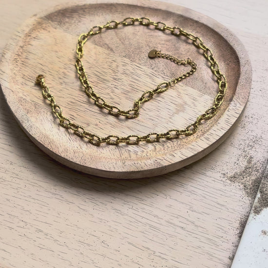 Avec ses maillons dorés et son éclat solaire, le collier Elio capture la chaleur de l’été et sublime chaque silhouette d’une touche lumineuse et intemporelle