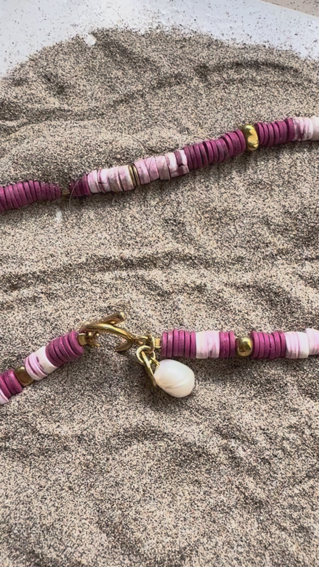 Les perles d'inspiration Heishi sont réalisées à la main en argile polymère.