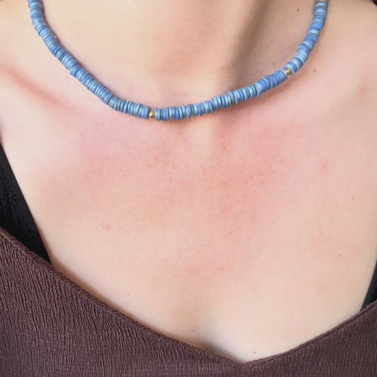 Les perles d'inspiration heishi sont réalisées à la main en argile polymère.