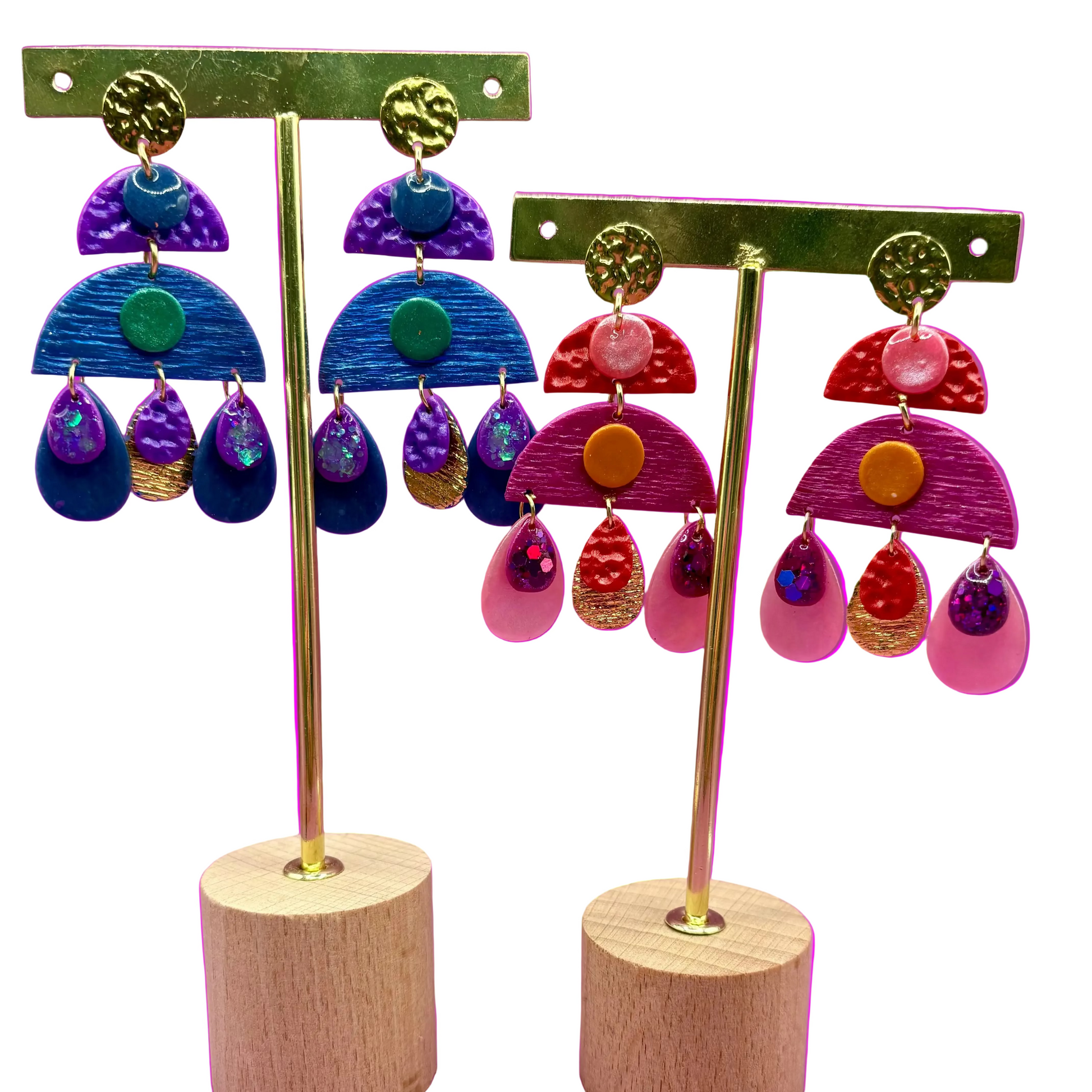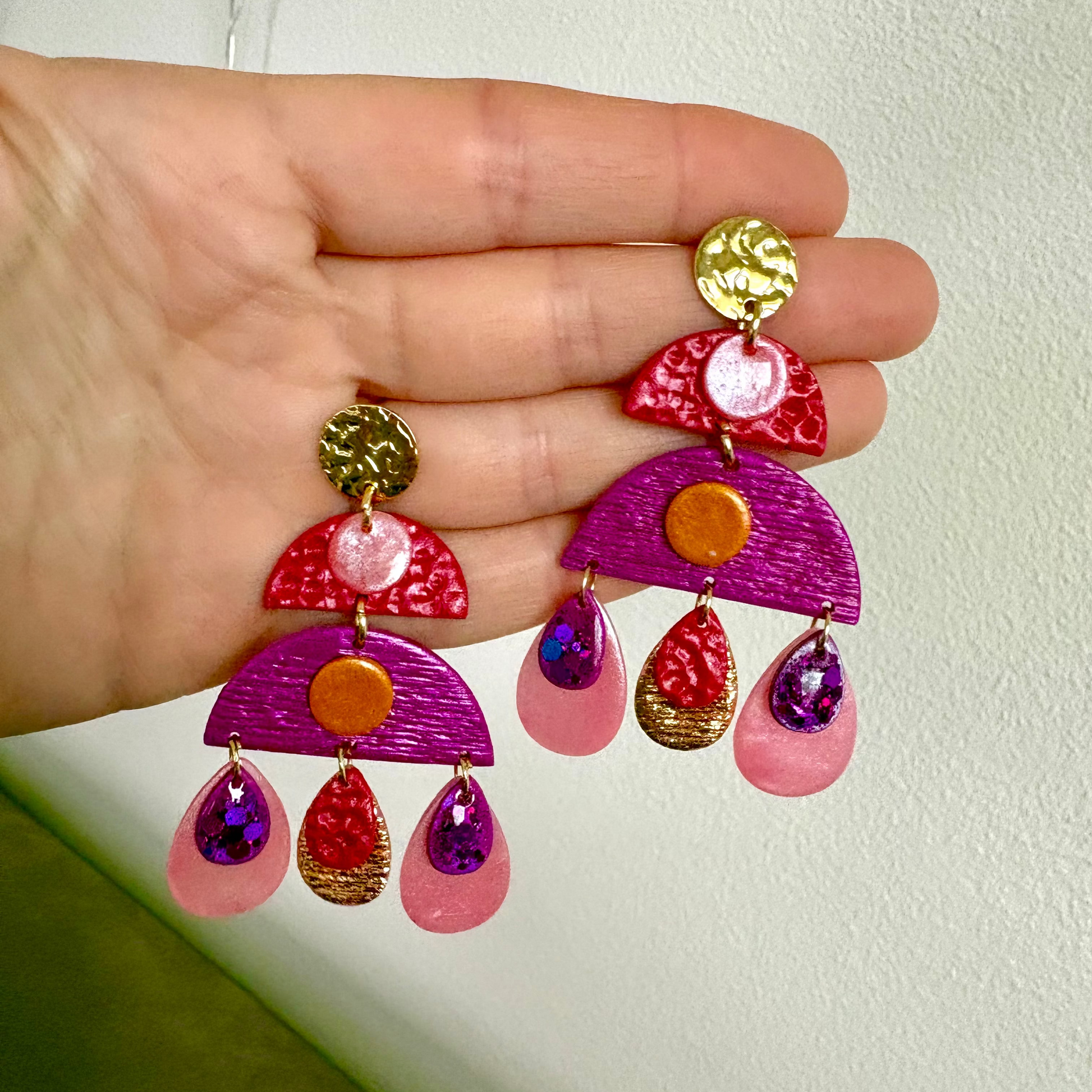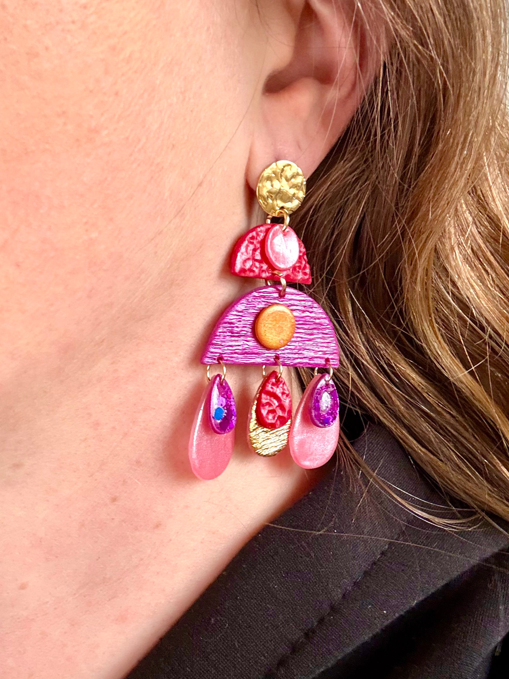 Boucles d'oreilles en argile polymère réalisées à la main.