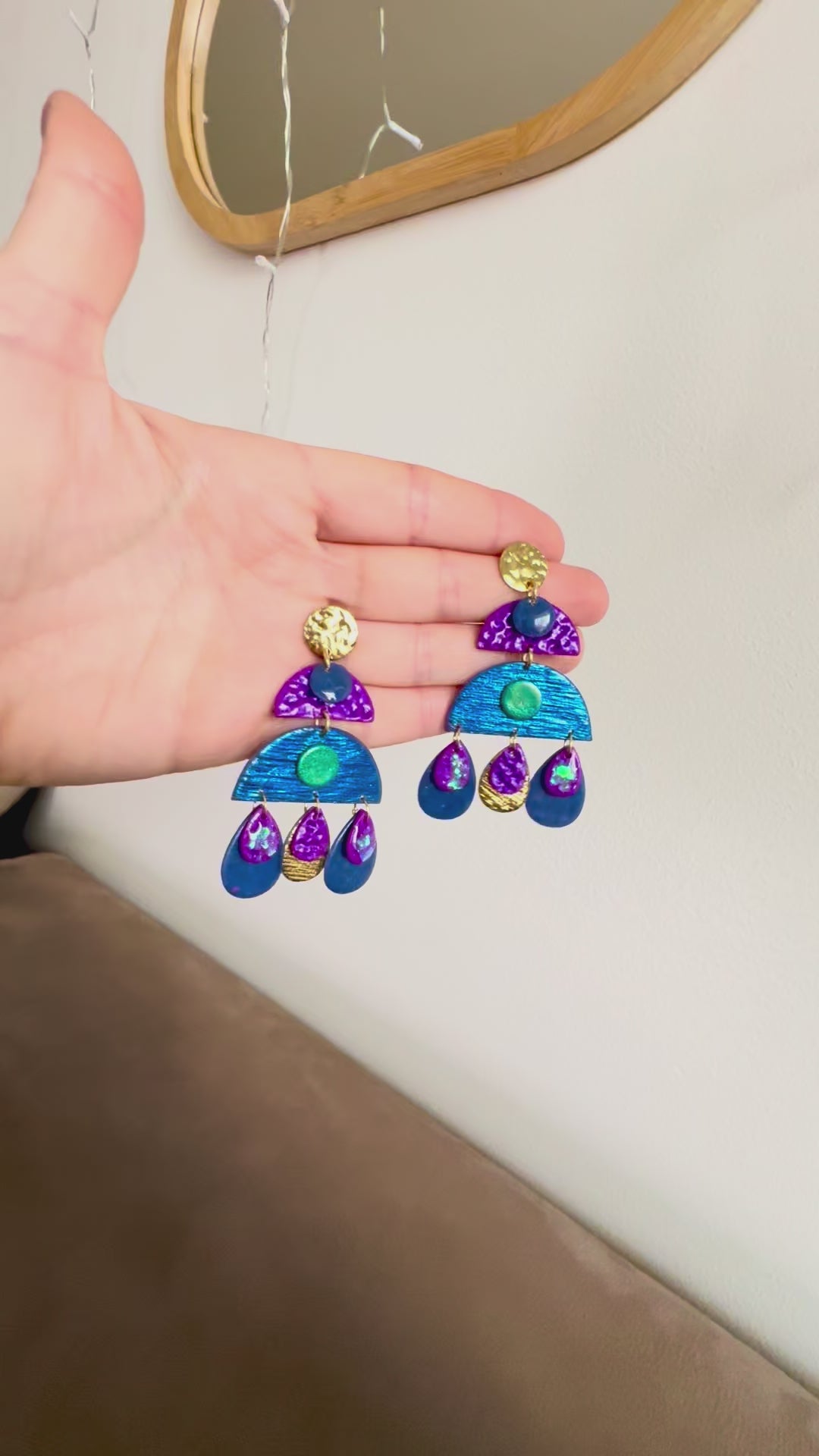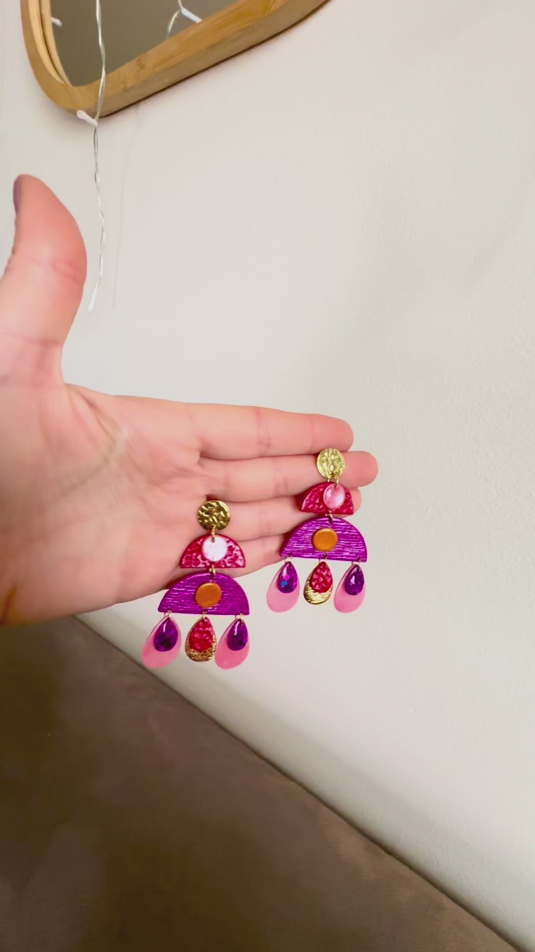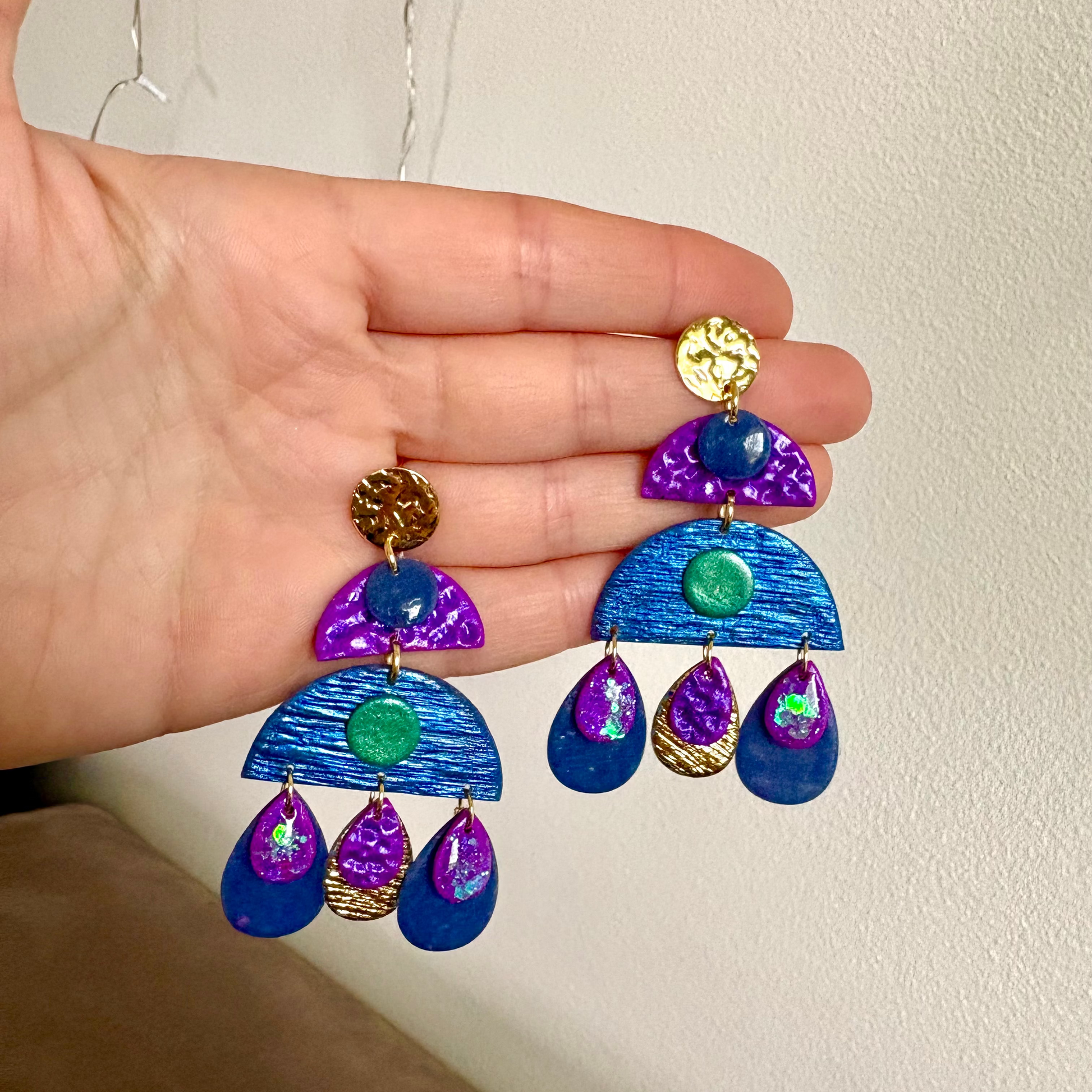 Boucles d'oreilles en argile polymère réalisées à la main.