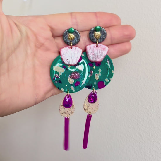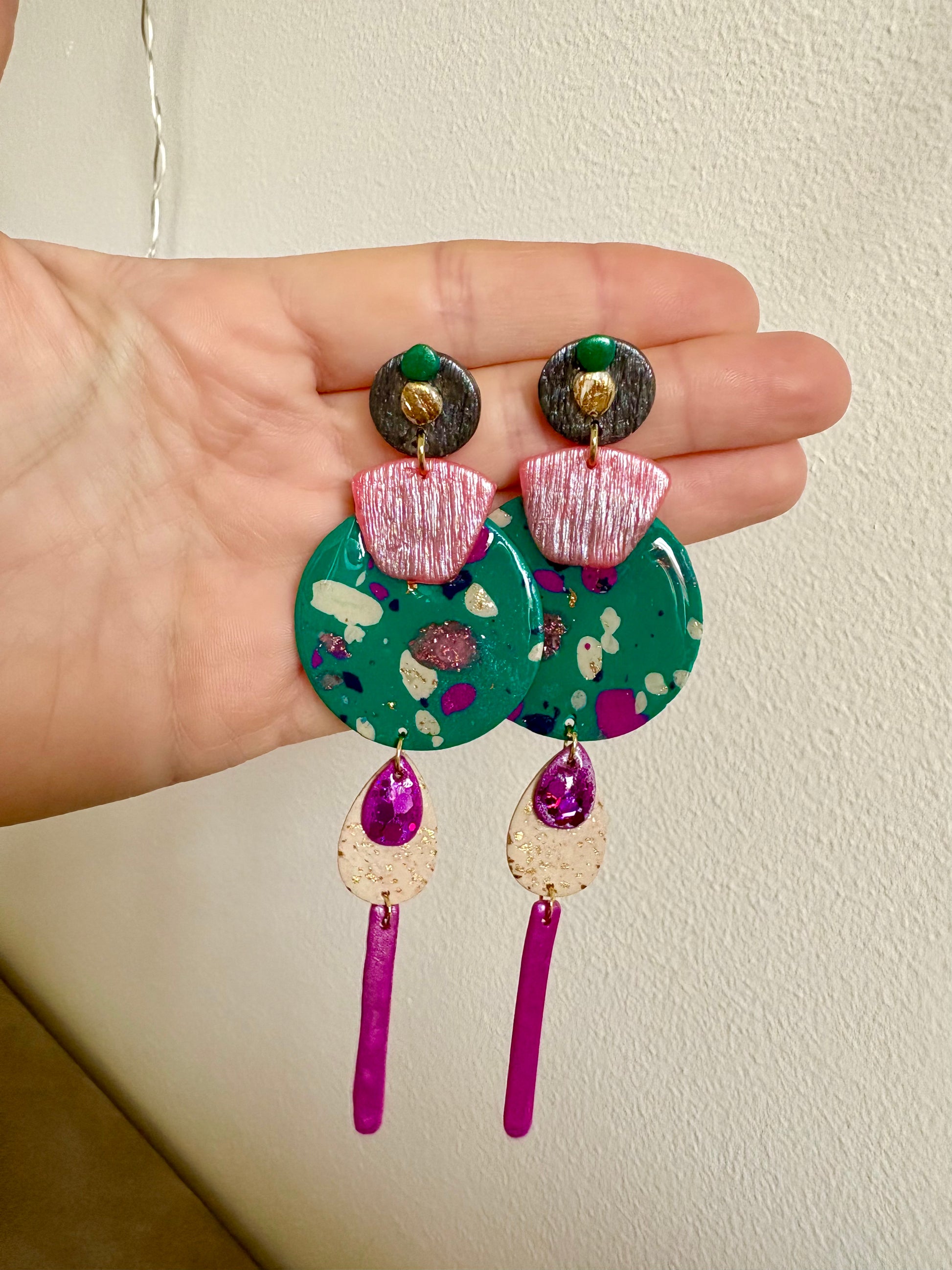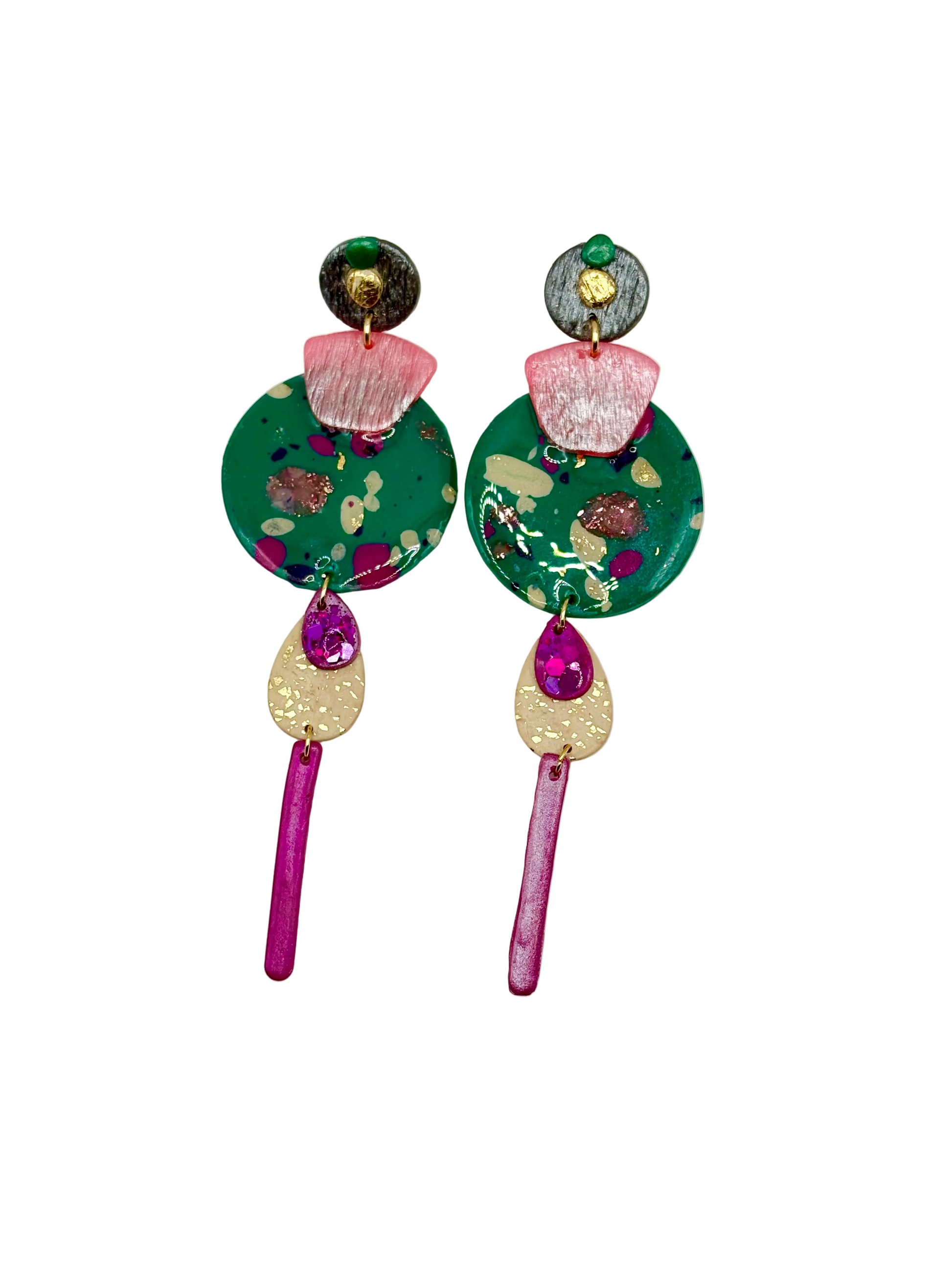 Boucles d'oreilles en argile polymère réalisées à la main.