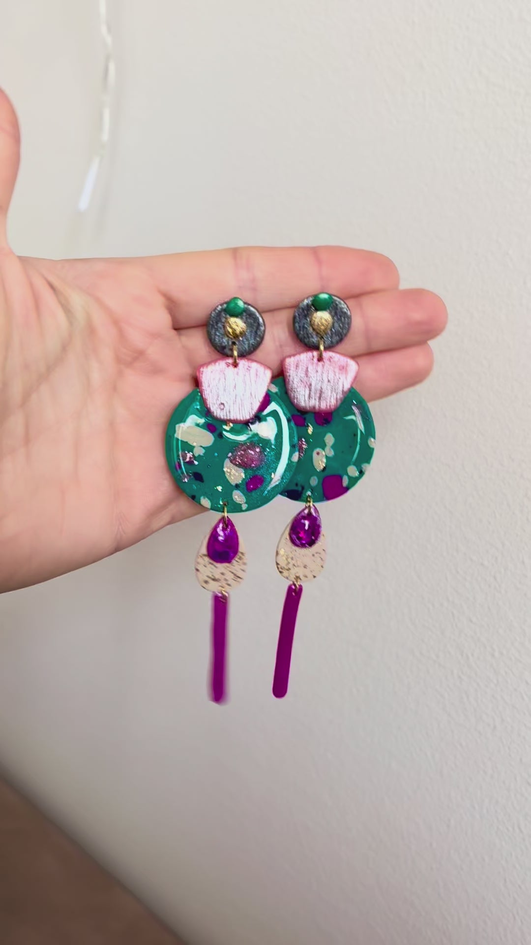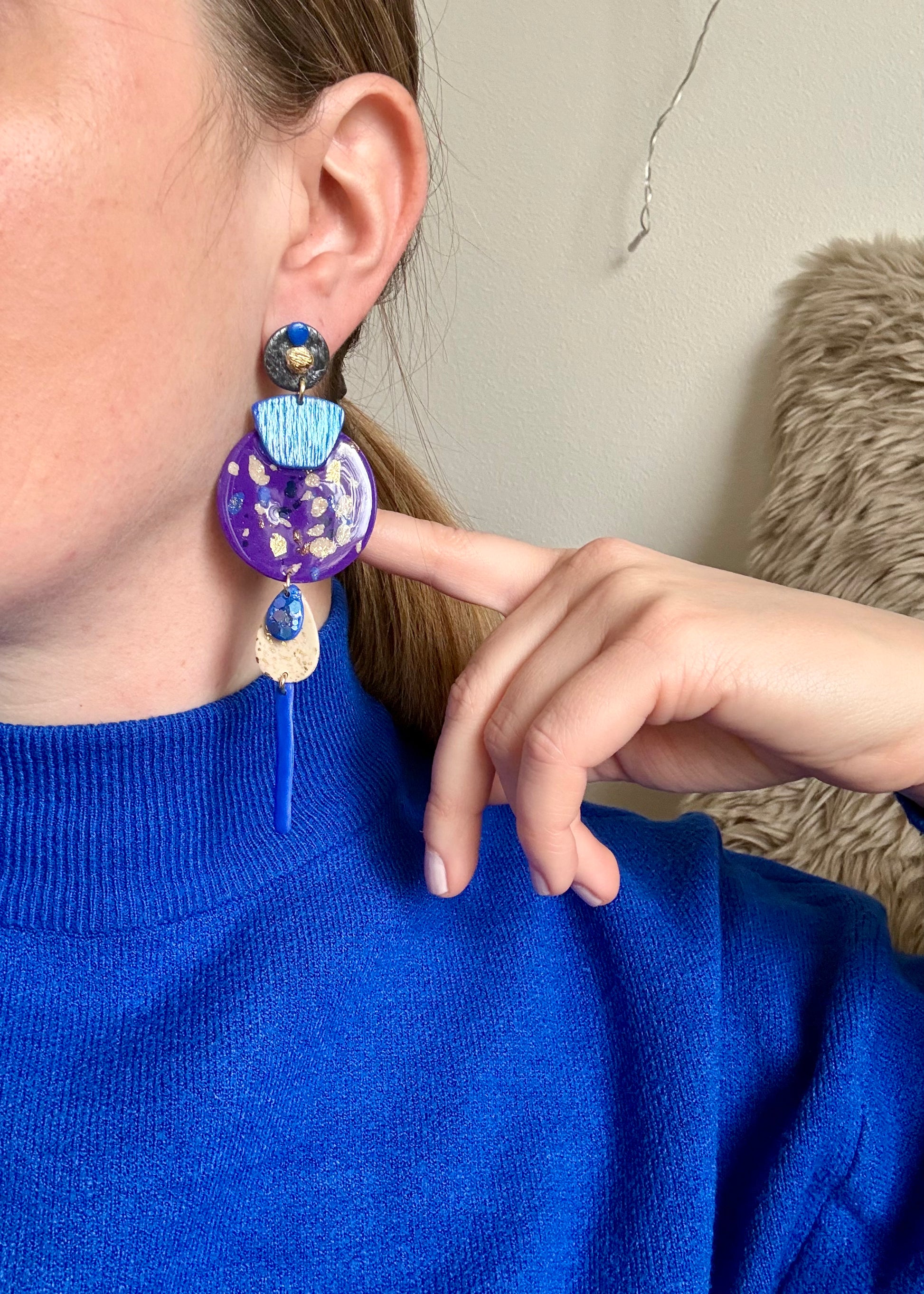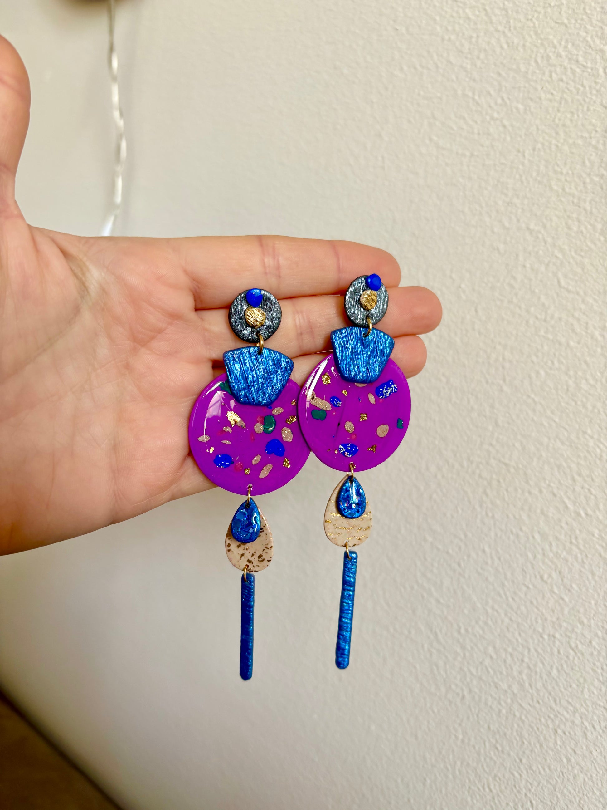 Boucles d'oreilles en argile polymère réalisées à la main.