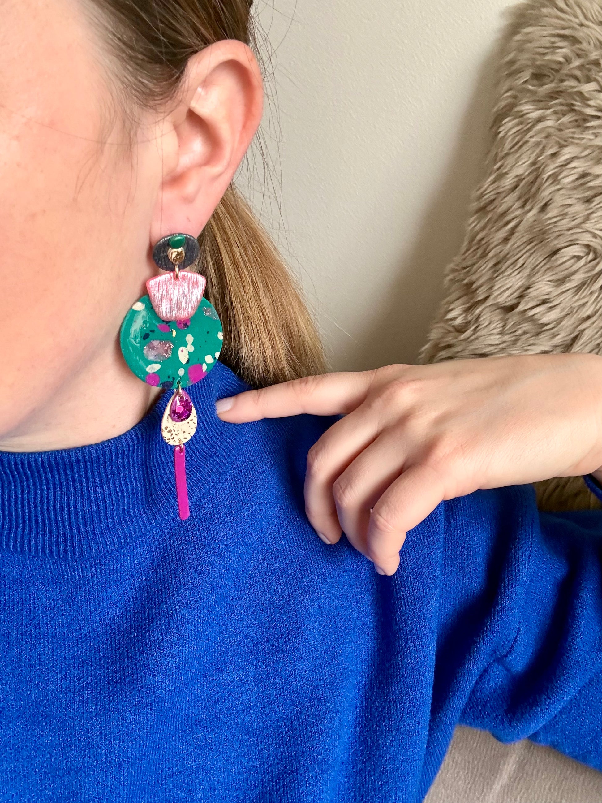 Boucles d'oreilles en argile polymère réalisées à la main.